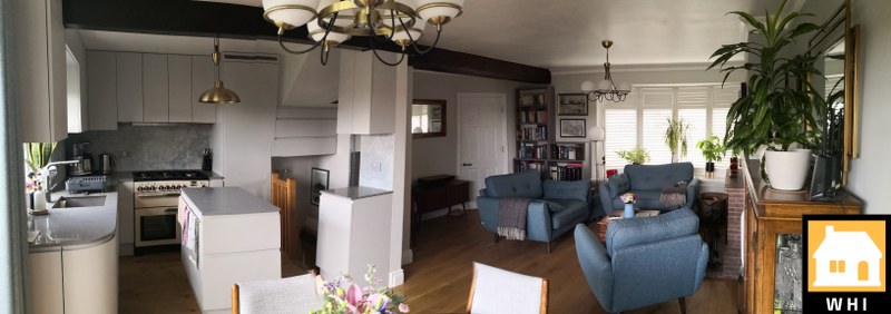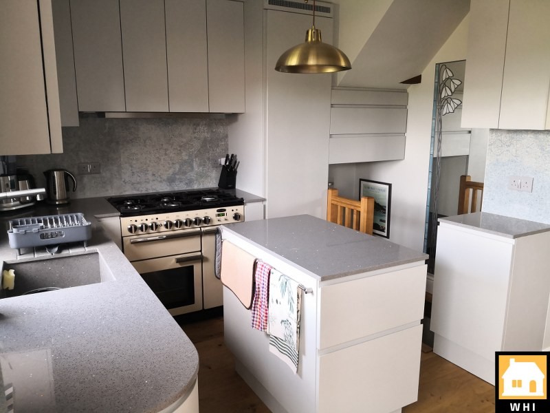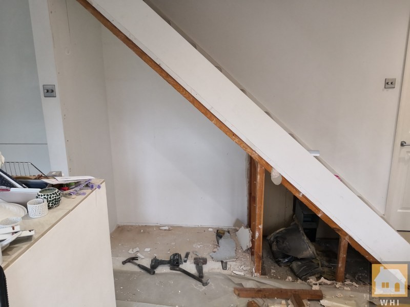 For this project we had previously built an exterior porch which gave access to space beneath the rear of the house where some further small excavation was required. All electrical and water services had to be relocated, then under-floor heating was installed, a staircase constructed into the main house and finally bespoke cabinet work was undertaken.