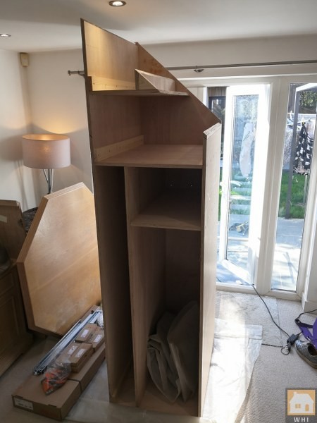 Space was limited, so we modified specially chosen wardrobes to fit around the chimney breast and we fully decorated the whole room.